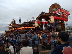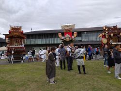 たくさんの山車が 市役所前のしるくるひろばで開催