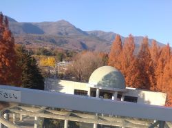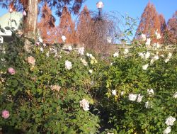 秋バラと紅葉 フラワーパークのタワーの上から